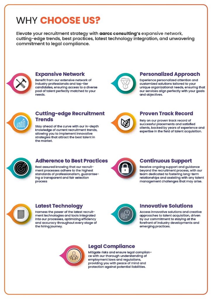 Empowering organizations to recruit talent perfectly aligned with their skill requirements, aarcc consulting specializes in facilitating precision hiring solutions for seamless workforce optimization.
